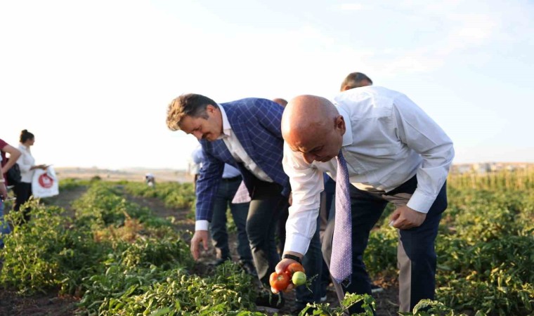 Ankara’nın Keçiören Belediye Başkanı Turgut Altınok ilçedeki Bağlum bölgesinde 20 dönümlük alana kurulan bostanda Keçiören mahalle muhtarlarını ağırlayarak onlarla birlikte mahsulleri hasat etti.