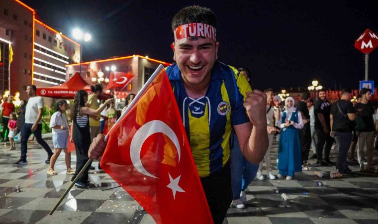 Türk Bayraklarının da dağıtıldığı meydanda, Türkiye’nin attığı her golde büyük sevinç yaşandı. 90 dakika süren heyecan, maçın bitiş düdüğüyle birlikte yerini büyük bir coşku ve mutluluğa bıraktı.