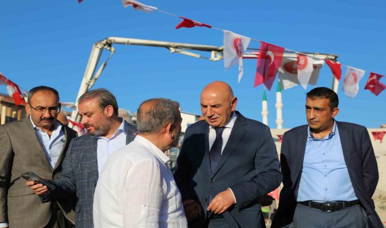 Protokol konuşmalarının ardından beton mikseri çalıştırılarak katılımcılarla birlikte spor tesisinin temelleri atıldı ve inşaat alanında incelemelerde bulunuldu.