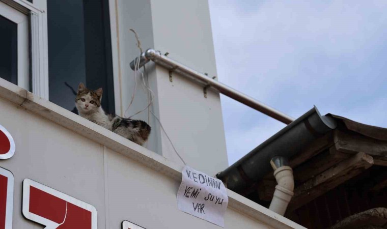 Şehirde evlenecek çiftlere çeyiz eşyaları satan Miyase Aytemir isimli esnaf, çatı katından iş yerinin balkonuna gelen kediyi sahiplendiklerini söyledi. Aytemir, "Kedi yavrusunu evlat edinmek zorunda kaldık. Mamasını verdikten sonra düzenli olarak beslemeye başladık" dedi. Ekmek atanları uyarmak için iş yerine yazı yazan Aytemir açıklamasında, "Yavru kedi, balkonumuza geliyor. Kendi halinde. Bizler de rahat uyuması için battaniye serdik. Ekmek kırıntısı atan insanlar bizi çok rahatsız etti. İş yerimize not yazarak kedinin bir şeye ihtiyacı olmadığını ifade ettik" ifadelerine yer verdi.