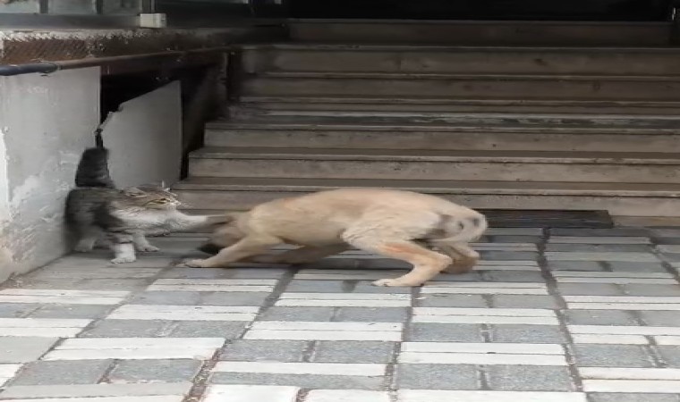 Kent merkezinde çekilen görüntüler, kedi ile köpeğin düşmanlığını yalanladı. Bir apartmanın girişinde kedi ile köpeğin oynadığını gören vatandaşlar cep telefonlarına sarılarak olayı görüntüledi. Görüntülerde kedinin köpek ile oynaması, birbirlerinin çevresinde dönüp patileri ile birbirlerini sevmesi görenlere tebessüm ettirdi. Görüntüler özellikle sosyal medyada büyük ilgi gördü.