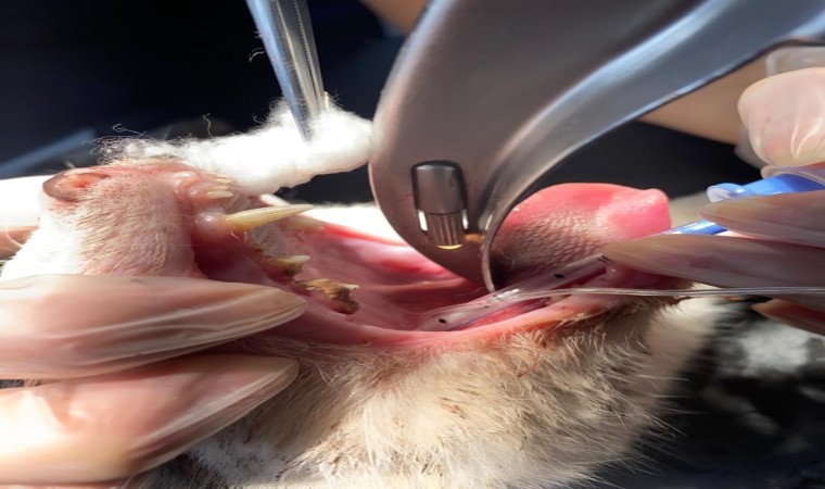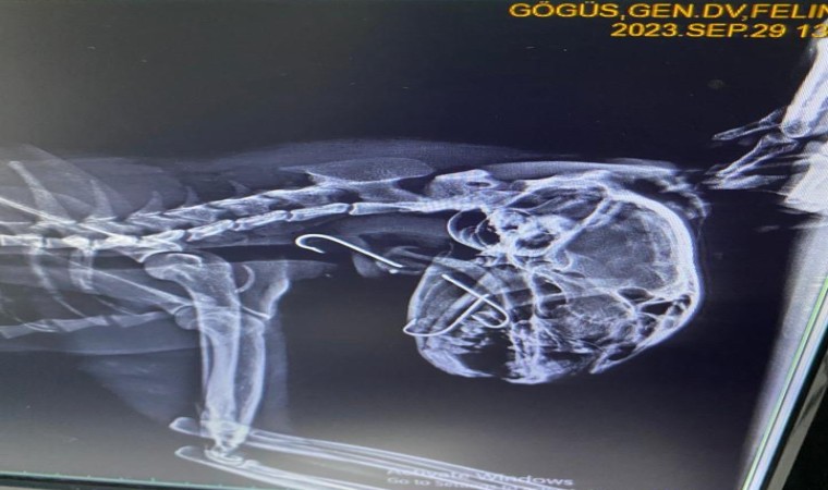"Vaka geldiği zaman ağzında salya akıntısı ile geldi. Üç günden beri bu haldeymiş. İlk yaptığımız muayenede kancanın bir kısmını gördük ve hemen röntgeni çektik. Röntgende 3 tane kancanın boğazına takıldığını gördük. Endoskopi yardımıyla 3’ünü birden çıkardık. Üçü de çok derine saplanmıştı. Yarım saat bir saatlik bir operasyonla arkadaş sağlığına kavuştu. Ya balık alırken ya da balıkçılar tarafından atılan balığı kaparken kancayla beraber kaptı. Kancaları yuttu. Oraya saplandığı için de ne ağızda kaldı ne de mideye gitti. 3-4 günden beri enfeksiyonlu ağız akıntısı varmış, kliniğimize gelip tedavisini gördü. 4-5 yaşlarında sokak hayvanı. Bir hayvansever tarafından getirildi. Masraflarını hayvansever karşılıyor."