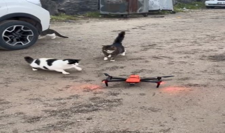 Tekirdağ’da dron cihazını fark eden meraklı kedi peşine düştü. Cihazı fare zanneden kedi, ilk etapta belgesel filmlerindeki gibi avına yaklaşmaya çalıştı. Daha sonra av sandığı cihazın kaçmadığını anlayan kedi, cihazın başına gelerek dronun pervanelerine defalarca pati attı.