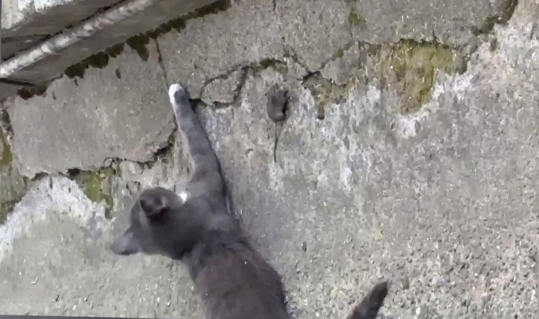 Zonguldak’ın Devrek ilçesinde kaydedilen görüntülerde kedinin fare ile oyunu gülümseten anlara neden oldu.