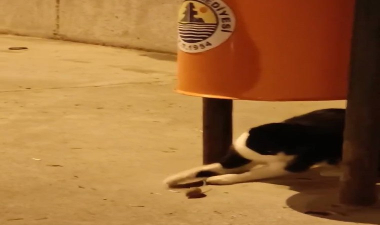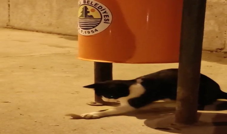 Erdemli ilçesinde bir çöp kutusunun altında yatan kedinin yanına fare geldi. Fareyi gören kedi hareketlenerek patisiyle oyun oynamaya başladı. O anlarda farenin de bölgeden uzaklaşmaması dikkat çekti. Yoldan geçen bir kişi ise kedi ile farenin oyununu cep telefonu kamerası ile kaydetti.