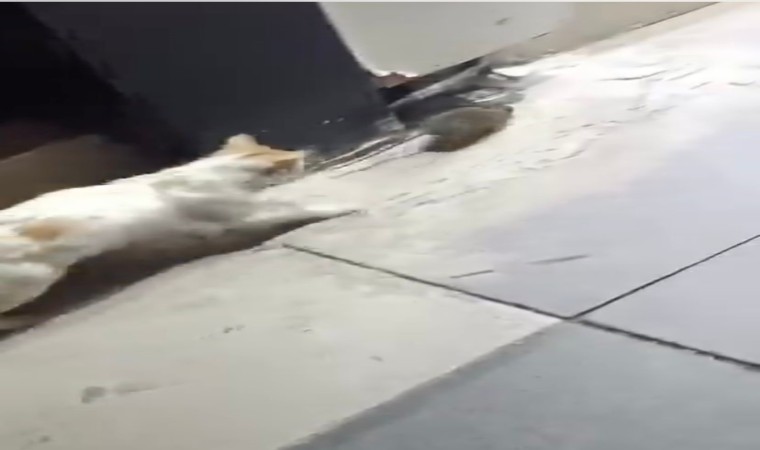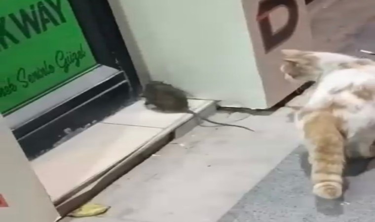 Elazığ Vali Fahribey Caddesinde kedi, fareyi kaldırım arasında sıkıştırdı. Fare kaçacak yer bulamazken, kedi bir süre fare ile oynadı. Doğası gereği fareyi alıp yemesi gereken kedi, patisi ve ağzıyla fareye temas etmeye çalıştı. Bir yandan etrafa bakınan kedi, fare ile oyun oynamayı sürdürdü.