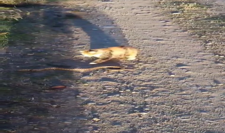 Elazığ’da kedi ile yılanın kavgasında kazanan kedi oldu. Yaşanan durum cep telefonu kamerasına yansıdı.