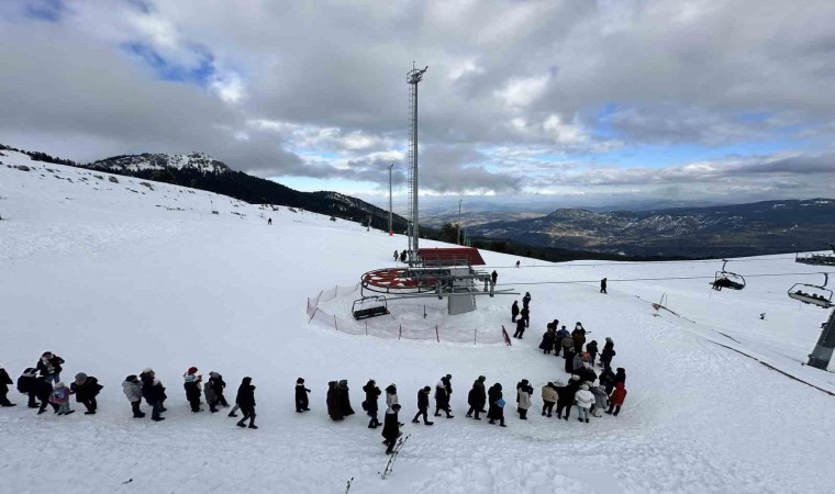 Uzun kuyrukların oluştuğu telesiyeje de binen vatandaşlar, eşsiz manzaranın keyfini çıkardı.
