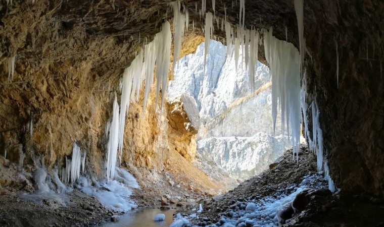 Aşırı soğukların etkili olduğu bugünlerde Taş Yolu buz tuttu. Tüneller içerisinde oluşan buz sarkıtları fotoğraf severlerin akınına uğradı.