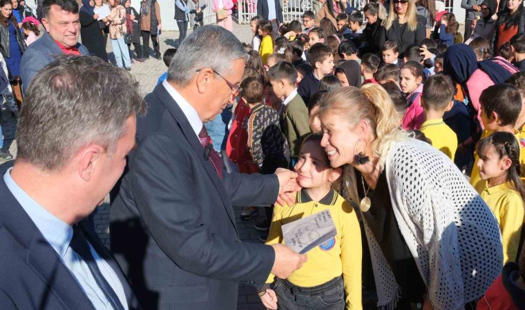 Başkan Topaloğlu ve İlçe Milli Eğitim Müdürü Ergen, okulda bir sınıfa girerek öğrencilerin karnelerini verip öğrencilerle tek tek sohbet etti. Başkan Topaloğlu, bazı öğrencilerin imza isteğini geri çevirmeyerek ellerine imza attı. Topaloğlu’nu karşısında gören öğrenciler koşup sarılarak hatıra fotoğrafı çektirdi. Topaloğlu, öğrencilerin aileleriyle de sohbet etti.
