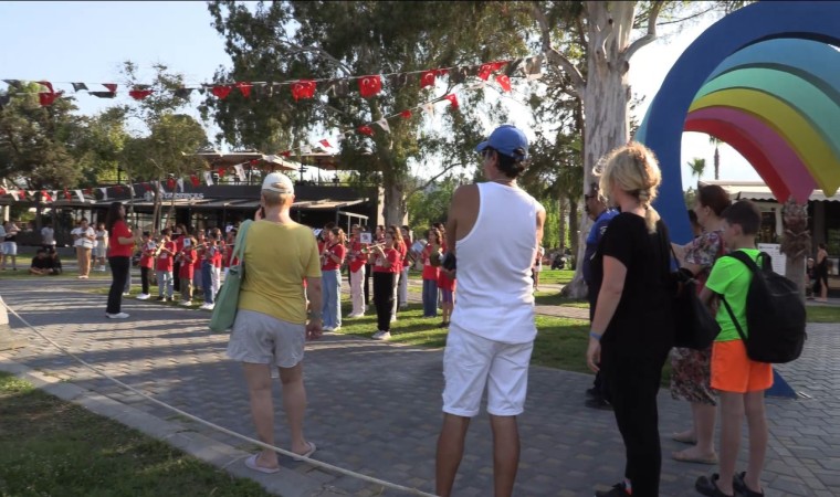 İlçede tatili sürdüren yerli ve yabancı misafirler, orkestranın sergilediği performansı cep telefonu ile görüntüledi.