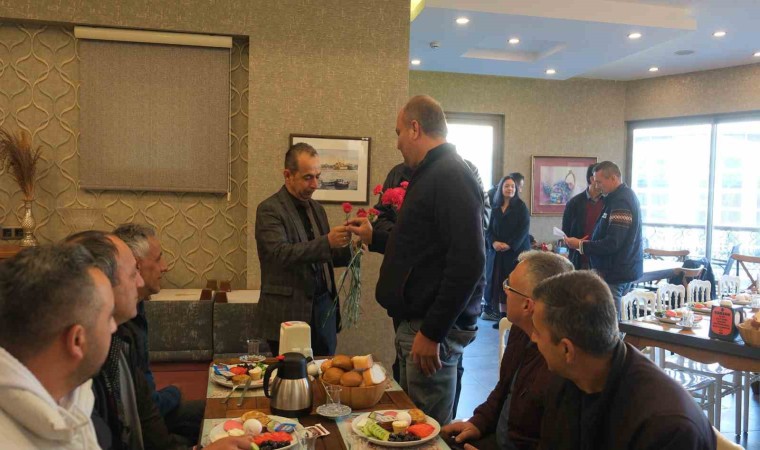 Başkan Yardımcısı Baytekin, kahvaltı sonrası Kemer VİP Tur Başkanı Oktay Çelik ile birlikte şoförlere karanfil dağıttı.