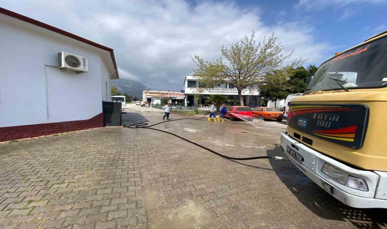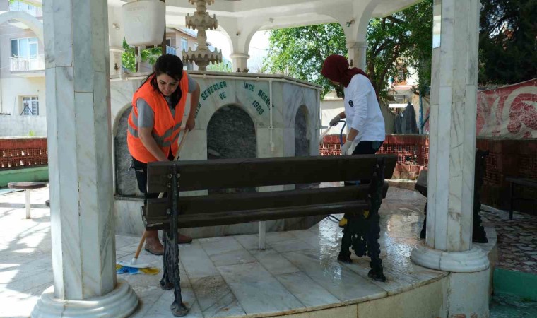 Park ve Bahçeler Müdürlüğü ekipleri, su tankerleri ile ilçe genelindeki camilerin bahçe ve avlularını yıkarken, temizlik işleri müdürlüğü ekipleri de cami içerisinde temizlik çalışmaları yapıyor.