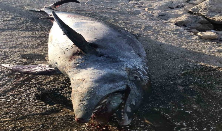 Kemer’in ünlü Ayışığı Koyu sahilinde ölü yunus balığı gören vatandaşlar, durumu Kemer Belediyesine bildirdi. Yunus balığının bulunduğu sahile gelen Kemer Belediyesi Afet İşleri Müdürlüğü ekipleri, yaklaşık 3 metre uzunluğundaki yunus balığında kafa travması ve enfeksiyon olduğunu belirledi. Yapılan fiziki incelemelerin ardından ölü yunus balığı bulunduğu yerden kaldırıldı.