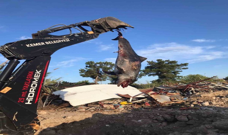 Kemer’de yaklaşık 3 metre uzunluğunda ölü yunus balığı sahile vurdu. Kemer Belediyesi ekiplerinin yaptığı inceleme sonrası ölü yunus balığı bulunduğu yerden kaldırıldı.