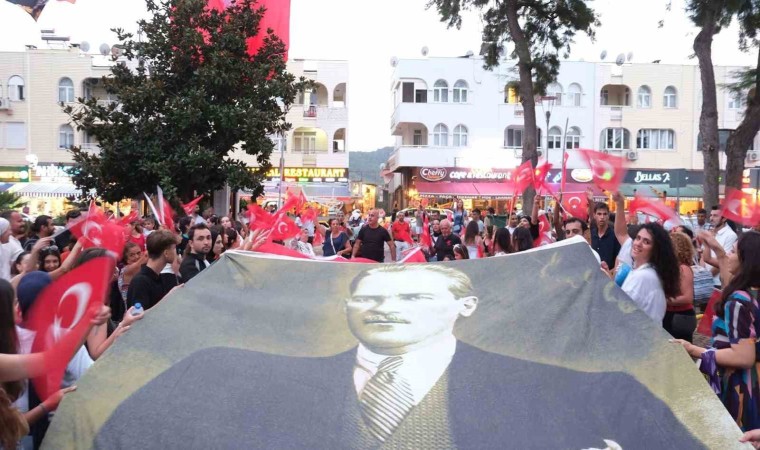 Liman Caddesi’nde başlayan fener alayı, Kemer Cumhuriyet Meydanı’na ulaştı. Fener alayına katılanlar, ellerindeki meşaleler ile Türk bayraklarını sallayarak kutlamanın coşkusuna ortak oldu. Kemer Belediyesi Gençlik Bando ve Orkestrası ise fener alayına katılarak renkli görüntüler oluşturdu. İlçede tatilini sürdüren yerli ve yabancı misafirler ile vatandaşlar, orkestrasının muhteşem performansını cep telefonu ile görüntüledi.