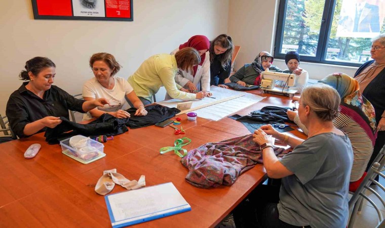 Tepebaşı Belediyesi’nin Belde Evlerinde düzenlenen örgü ve giyim kursuna katılan kadınlar, bluzdan eteğe, pantolondan elbiseye kadar kendi giyeceklerini kendileri üretiyor.
