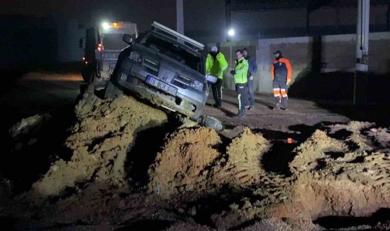 Kaza saat 00.00 sıralarında Cumhuriyet mahallesi Mareşal Fevzi Çakmak Caddesi üzerinde meydana geldi. Cadde üzerinde seyir halinde olan İsmail U. yönetimindeki 16 BCH 696 plakalı cip, sürücünün geç fark etmesi sonucu alt yapı için kazılan toprağa çarparak saplandı.Kaza yerine polis ekipleri sevk edildi.
