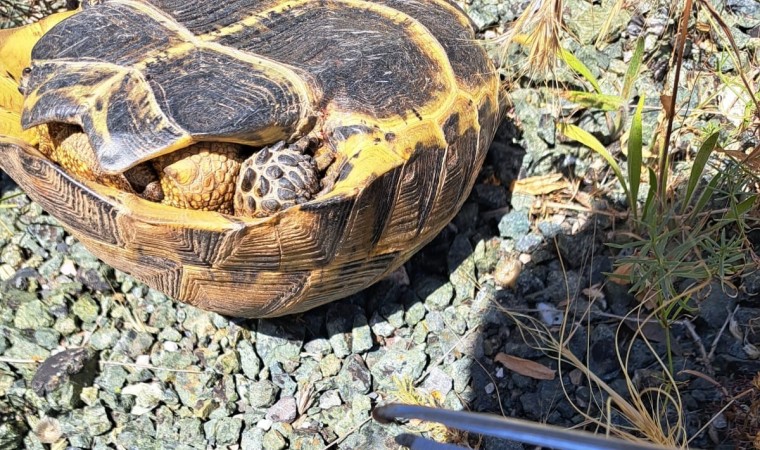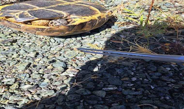 Daha sonra kaplumbağayı ters çevirerek doğaya yeniden salan vatandaş, bu anları da cep telefonu ile kayda aldı.