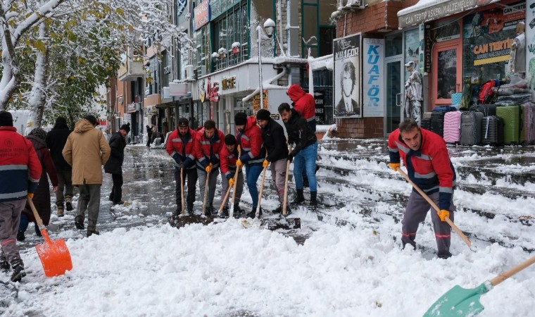 Erzincan’da etkisini gösteren yoğun kar yağışı ile birlikte şehir genelinde hayatın normal seyrinde devam etmesi ve ulaşımın aksamaması için kar küreme çalışması yapıldı.