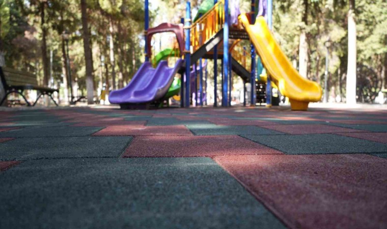 Adıyaman Belediyesi Park ve Bahçeler Müdürlüğü ekipleri tarafından çocuk oyun parklarının bakım ve onarım çalışması ile birlikte kauçuk zemin döşeme çalışmalarına devam ediliyor.