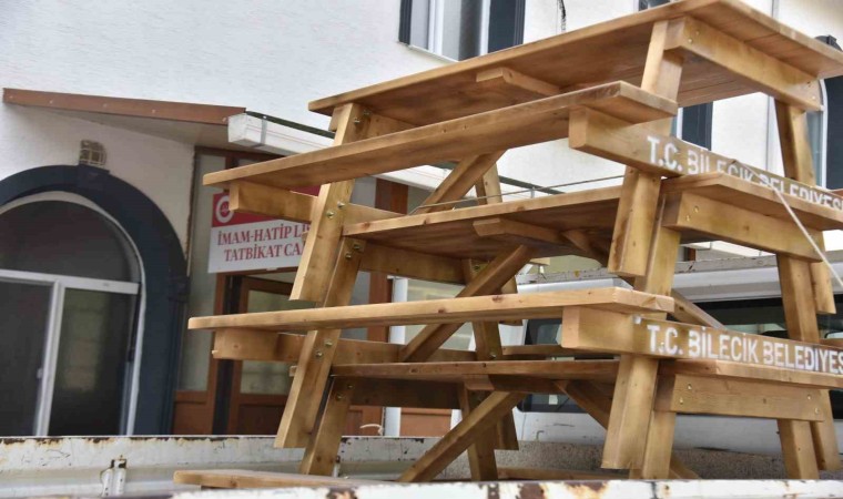 Bilecik’te 31 Mart yerel seçimi öncesinde Bayırköy Belediyesi’nden getirilerek, okul ve cami bahçelerine konulan oturma masaları ve banklar, Bayırköy Belediyesi’ne teslim edildi.