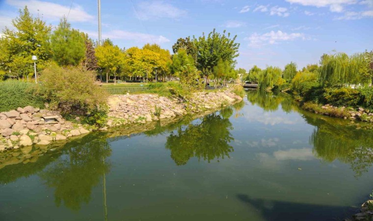 Hüzün mevsimi olarak bilinen ve sararan ağaçlardan dökülen yapraklarla kendini hissettiren sonbahar mevsimi, Manisa Atatürk Kent Parkında kartpostallık manzaralar oluşturdu.