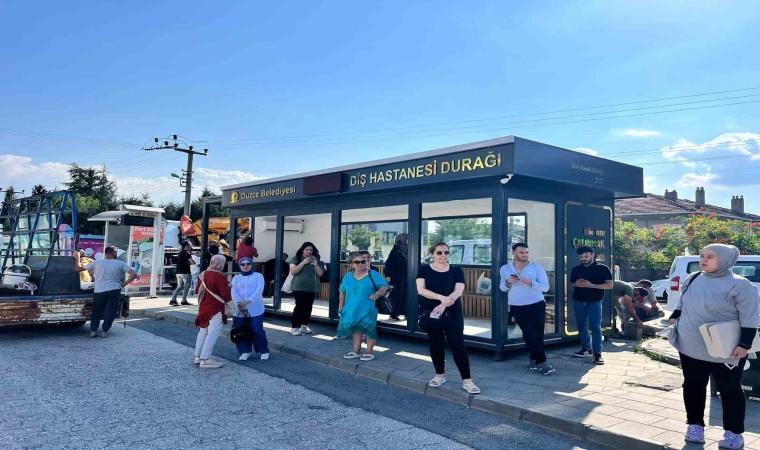 Düzce Belediyesi Destek Hizmetleri Müdürlüğü estetik görünüm katarak ürettiği modern ve akıllı durağın 3.’sünü Ağız ve Diş Sağlığı Hastanesinin bulunduğu alana yerleştirdi.