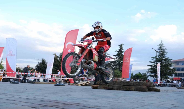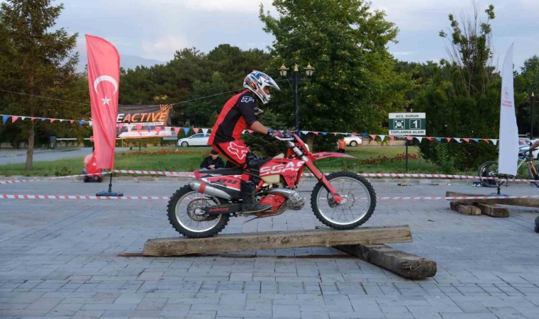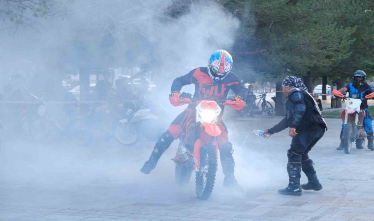 Erzincan’da Enduro Motosiklet Grubu üyeleri, enduro ve motocross parkurunda gösteri yaparak izleyenlere heyecan dolu anlar yaşattı.
