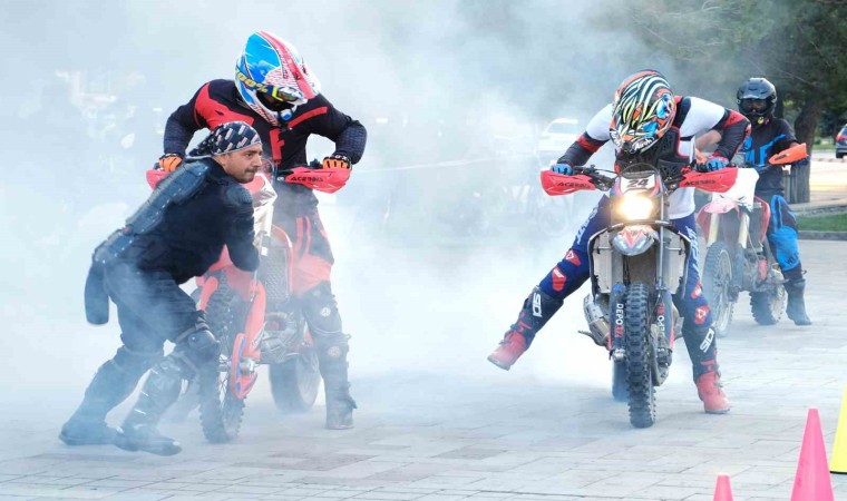 Erzincan Gençlik ve Spor İl Müdürlüğü, Avrupa Spor Haftası Etkinlikleri çerçevesinde belediye önünde düzenlenen gösteride motosiklet tutkunları yaptıkları adrenalin dolu hareketlerle izleyenleri keyifli anlar yaşattı. Motosikletli grup yaklaşık 200 metrelik enduro ve motocross parkurundaki engelleri aşarak heyecan yaşadı. Gerekli güvenlik önemlerin alındığı alanda yüzlerce vatandaş gösterileri keyifle izledi. Zaman zaman lastik yakma gösterileriyle de adeta duman bulutu oluşturan motosiklet tutkunları izleyenlerden tam not aldı.