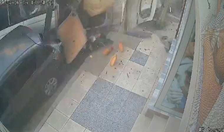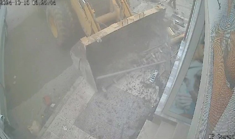 Hatay’da fren sisteminde arıza oluşan iş makinesinin ortalığı savaş alanına çevirdiği kazaya ait ortaya çıkan görüntüde, kaldırımda yürüyen vatandaşların ölümden saniyelerle kurtulduğu görüldü.