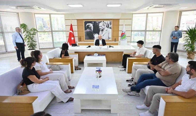 Yükseköğretim Kurumları Sınavı’na (YKS), Kepez Belediyesi’nin Yasin Naci Ağaroğlu Eğitim Merkezi’nde hazırlanan ve ilk 10 bine giren öğrenciler, başarılarını Kepez Belediye Başkanı Mesut Kocagöz ile paylaştı. YKS sınavında derece elde eden Melike Alpar, Muhammet Sehit Kardaş ve Mahmut Kerem Akdan, Başkan Kocagöz’ü makamında ziyaret etti. Öğrencilerin sınav deneyimlerini aktardığı ziyarette Başkan Kocagöz de, gençlere kaçıncı sırada olduklarını ve hedeflerini sordu. Gençlerin başarısından duyduğu memnuniyeti dile getiren Başkan Kocagöz, “Maşallah gençlerimiz pırıl pırıl. Tebrik ediyorum. Biz Kepez Belediyesi olarak sizlerin başarıları ile gurur duyuyoruz” dedi.