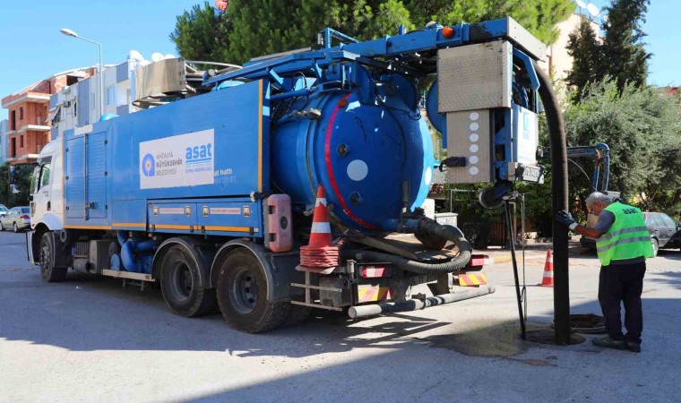 Antalya Büyükşehir Belediyesi ASAT Genel Müdürlüğü, Kepez ilçesinde 28 mahallede kanalizasyon hatlarında temizlik çalışması gerçekleştiriyor.