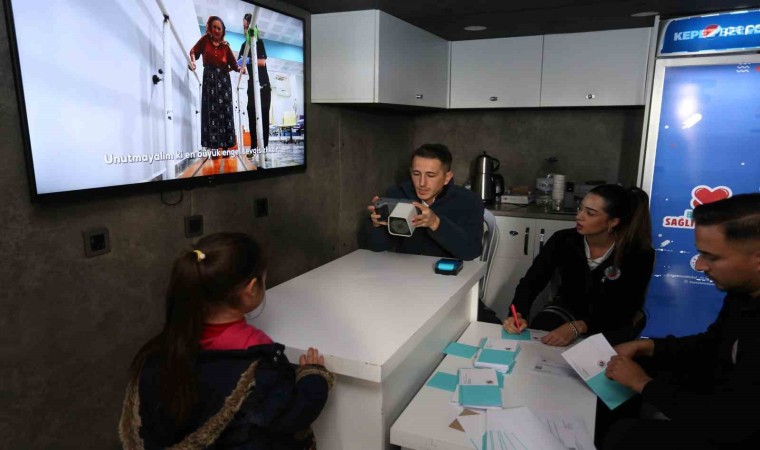 Kepez Belediyesi, çim futbol sahası kazandırdığı Başköy Mahallesi’nin çocuklarına Mobil Sağlık Merkezi ile göz taraması hizmeti de götürdü.