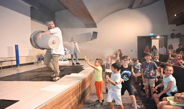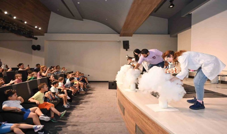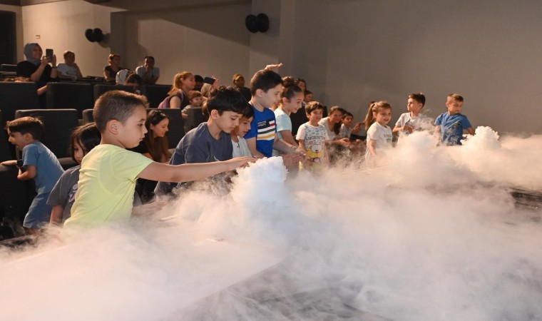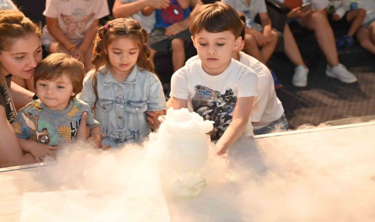 Antalya Bilim Merkezi’nde düzenlenen Bilim Show etkinlikleri kapsamında gerçekleştirilen açık hava basıncı, fildişi macunu ve sis makinesi deneylerinde minikler hem eğlendi hem de öğrendi.