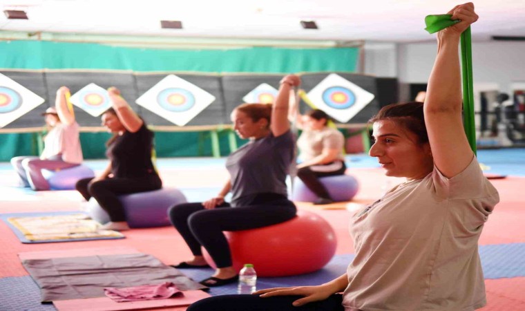 Kepez Belediyespor Kulübü’nün ücretsiz olarak 5 merkezde günde 4’er seans step aerobik kurslarına katılan kadınlar, hem formda kalıyor hem sosyalleşiyor.