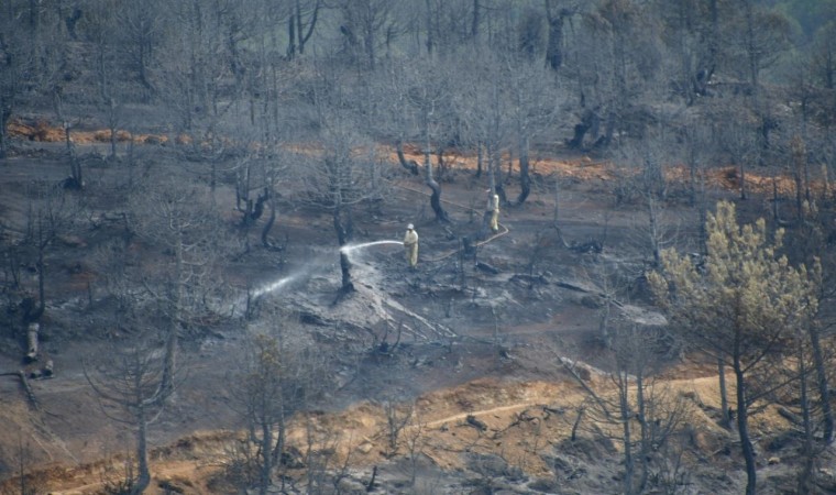 Balıkesir’in Kepsut ilçesi Karahaliller Mahallesinde dün öğleden sonra arazide başlayan yangın kontrol altına alınırken, ekipler soğutma çalışmalarına devam ediyor.