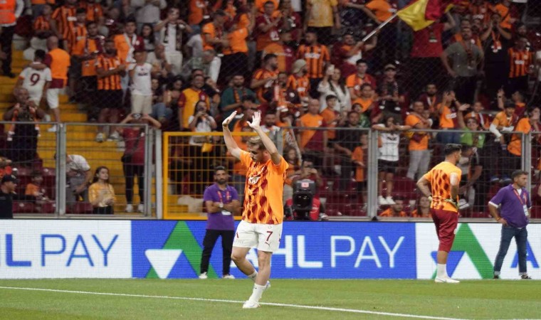 Galatasaray’ın Hatayspor ile oynadığı Trendyol Süper Lig’in yeni sezon açılış maçında takımın kaptanlarından Kerem Aktürkoğlu’na taraftarlar destek çıktı. Sarı-kırmızılı seyirciler Aktürkoğlu’nu tribüne çağırarak tezahüratta bulundu. Öte yandan “Arkandayız Kaptan” yazan ve Kerem Aktürkoğlu’nun fotoğrafının olduğu pankart açıldı.