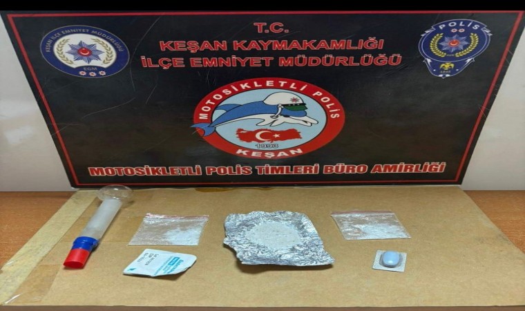 Edirne’nin Keşan ilçesinde, polis ekipleri tarafından 17 adreste yapılan eş zamanlı operasyonda, uyuşturucu, ruhsatsız tabanca, telsiz ele geçirildi.