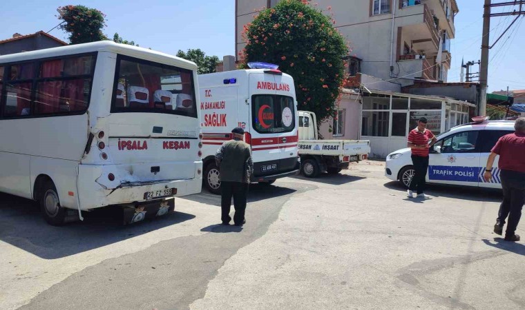 Alınan bilgiye göre, çarşı merkezinden Keşan Meslek Yüksekokulu istikametine giden R.G. (73) yönetimindeki 22 PB 677 plakalı minibüs, önünde giden E.B. (58) yönetimindeki 22 FZ 559 plakalı minibüse arkadan çarptı. Kazanın ardından freni boşalan 22 PB 677 plakalı minibüs, ara sokaktaki duvara çarparak durabildi. Kazada, iki minibüsteki 2 yolcu hafif yaralandı. Yaralılar, ambulanslarla Keşan Devlet Hastanesi’ne kaldırılarak tedavi altına alındı.