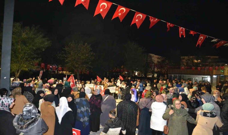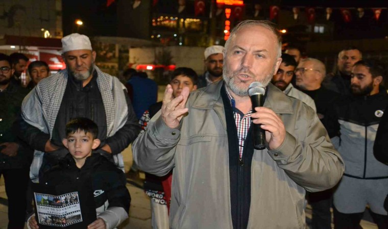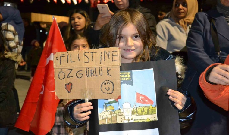 Cumhuriyet Meydanı’nda, çocukların da ellerinde İsrail’i protesto eden ifadelerin yazdığı pankartlar ile katıldığı yaklaşık 250 kişilik grup adına açıklama yapan Mustafa Kabakçılı, Kudüs’ün peygamberler şehri olduğunun altını çizerek, "Kudüs; Hazreti Ömer’in, Selahaddin Eyyubi’nin bizlere emanetidir. Kudüs; Müslümanlar için yeryüzü coğrafyasında en önemli 3 mescitten birisidir. Kudüs’ün içinde bulunduğu bugünkü hal, yer yüzündeki Müslümanların içini kanatmaktadır. Yahudiler Kur’an-ı Kerim’de anlatıldığı gibi zalimlerdir, hainlerdir, bozgunculardır. İnsanlık bunlarla imtihan olmaktadır. Bizler bugün safımızı belli etmek için Filistinli kardeşlerimizin yanınızdayız, dualarımız her daim sizlerle demek için bu meydanda bir araya geldik." dedi.