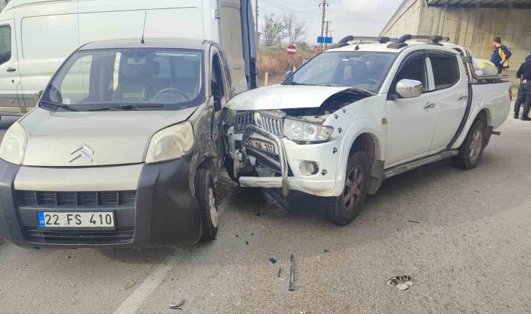 Alınan bilgiye göre; İstiklal Caddesi istikametinden Mezbaha İşletmeciliği istikametine giden M.E. yönetimindeki 33 DN 300 plakalı kamyonet ile İstanbul istikametinden gelerek, Sanayi Kavşağı’na gelen C.K. yönetimindeki 22 FS 410 plakalı hafif ticari araç ile çarpıştı. Kazada, hafif ticari araçta bulunan 2 yolcu yaralandı. Yaralılar, kaza yerine gelen 112 acil servis ambulansı ile kaldırıldığı Keşan Devlet Hastanesi’nde tedavi altına alındı. Polis kaza ile ilgili inceleme başlattı.