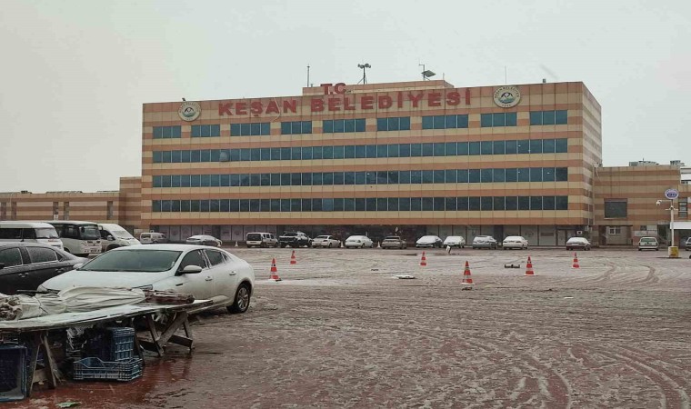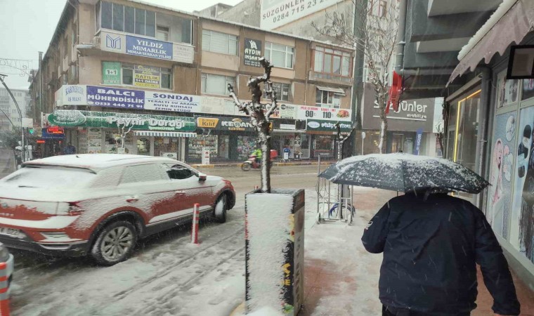 Edirne’nin Keşan ilçesinde beklenen kar yağışı sabah saatlerinde başladı.