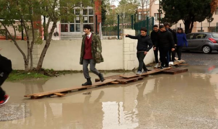 Keşan’da kuvvetli yağışta lise bahçesi su altında kaldı