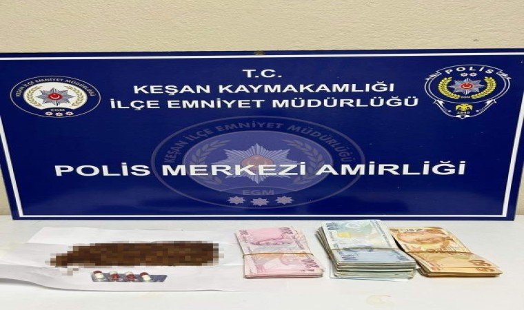 Alınan bilgiye göre, şüphelendikleri A.T.’yi Yenimescit Mahallesi Hasır Sokak’ta durduran Keşan İlçe Emniyet Müdürlüğü ekipleri, şüphelinin üst aramasını yaptı. Yapılan aramada, 0.51 gram uyuşturucu madde ele geçirildi. İfadesinde, uyuşturucu kullandığını ve uyuşturucuyu E.P.’den aldığını söylemesi üzerine E.P.’nin evini arayan polis, evde 4 adet hap, 24.82 gram uyuşturucu, ve 35 bin 200 TL ele geçirdi. A.T. ve E.P. hakkında adli işlem başlatıldı.