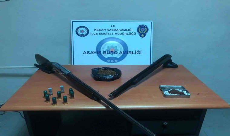 Edirne’nin Keşan ilçesinde, uyuşturucu ticareti yaptığı iddia edilen bir kişinin evinde arama yapan polis, 127,09 gram uyuşturucu ve ruhsatsız 2 tüfek ele geçirirken, gözaltına alınan 2 şüpheliden biri tutuklandı.