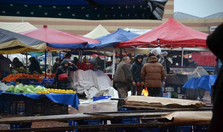 Keşan ilçe merkezinde kurulan halk pazarında tezgah açan esnaf, yağmurun yağmaya başlamasının ardından rüzgarın da etkili olmasıyla tezgahlarını toplamaya başladı. Bazı vatandaşlar, şemsiyeleriyle yağmura rağmen alışveriş yaparak evlerinin yolunu tuttu. Tezgahlarını açık tutan bazı esnaf ise tenekede ateş yakarak soğuktan korunmaya çalıştı.