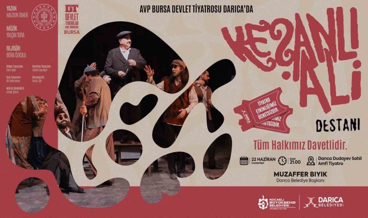 Türk tiyatrosunun en önemli eserlerinden olan "Keşanlı Ali Destanı" adlı oyun, Büyük Anadolu Turnesi kapsamında Darıcalı tiyatroseverler için perdelerini açacak. Bursa Devlet Tiyatrosu yapımı, Türk tiyatrosunun klasikleşmiş eseri olan oyun, 5 sezondur kapalı gişe oynuyor. Haldun Taner’in yazdığı ve müziklerini Yalçın Tura’nın bestelediği Keşanlı Ali Destanı oyununun yönetmenliğini Bora Özkula yapıyor. Sevdiği kızın dayısını öldürdüğü iddiasıyla hapse girip kahraman olan Ali’nin hikayesinin anlatıldığı oyun, yarın saat 21.00’de Dudayev sahilinde bulunan amfi tiyatroda sahnelenecek. Darıca Belediyesi tarafından ücretsiz olarak sahnelenecek oyuna tüm vatandaşlar davet edildi.