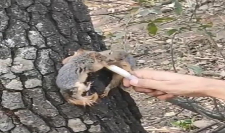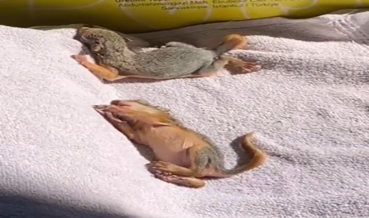 Tunceli’de inşaat sahası açılması sırasında kesilen bir ağaçta bulunan yavru sincaplar koruma altına alındı.
