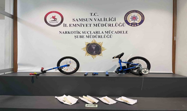 Olay, Samsun’un Terme ilçesinin Fenk Mahallesi’nde meydana geldi. Edinilen bilgiye göre, polis kontroller sırasında yolcu otobüsü bagajındaki bir bisikletten şüphelendi. Yapılan incelemelerde, bisikletin kaynakla orijinal yapısının değiştirildiği fark edildi. Spiral kullanılarak kesilen bisikletin gövde ve gidon kısmına gizlenmiş 430 gram metamfetamin ele geçirildi. Olayla ilgili H.B. (29) ve F.K. (34) gözaltına alınarak Samsun Emniyet Müdürlüğü’ne götürüldü. Olayla ilgili soruşturma devam ediyor.
